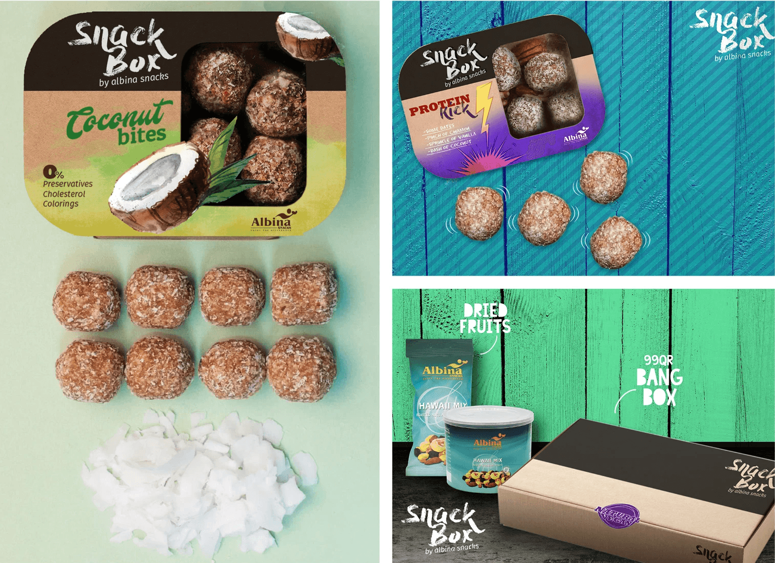 We developed fresh and appealing packaging designs for Albina Snacks' line of Power Balls, made from a variety of nuts. The new packaging emphasizes the product's healthy and energizing qualities, using vibrant colors and modern graphics to attract health-conscious consumers. This redesign not only enhanced the visual appeal but also effectively communicated the nutritious benefits of the product, boosting its market presence and consumer appeal.