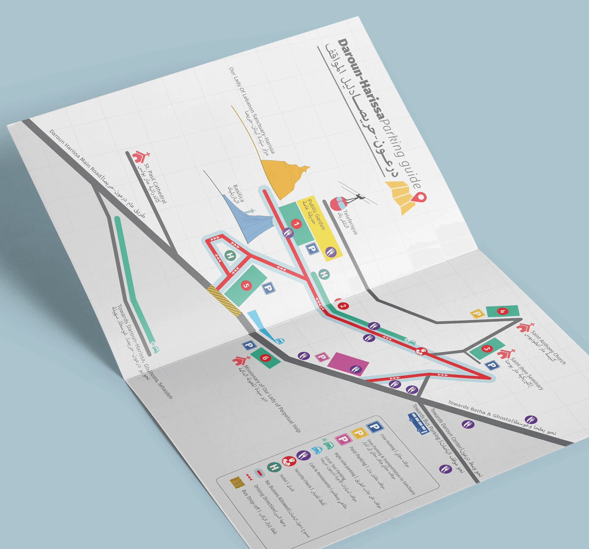 For Daroun Harissa Municipality, we undertook a multifaceted design project that included a variety of elements. First, we designed and produced an infographic flyer that included a detailed map. This flyer was not only informative but also visually engaging, making it easy for locals and visitors alike to navigate the municipality. We ensured that the map was accurate and included all the relevant landmarks and points of interest.